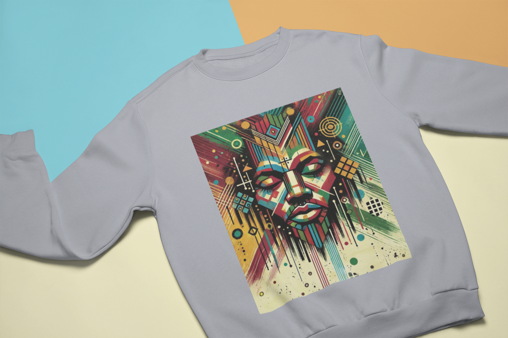 Embrace the fusion of spirituality, heritage, and modern urban aesthetics with this striking representation of King Jesus. This design features an abstract portrait of a Black Jesus, rendered in bold, Afrocentric street-art style. Vibrant geometric shapes and rich, multicolored patterns intertwine to symbolize the majesty and divine authority of Christ, while celebrating cultural pride.