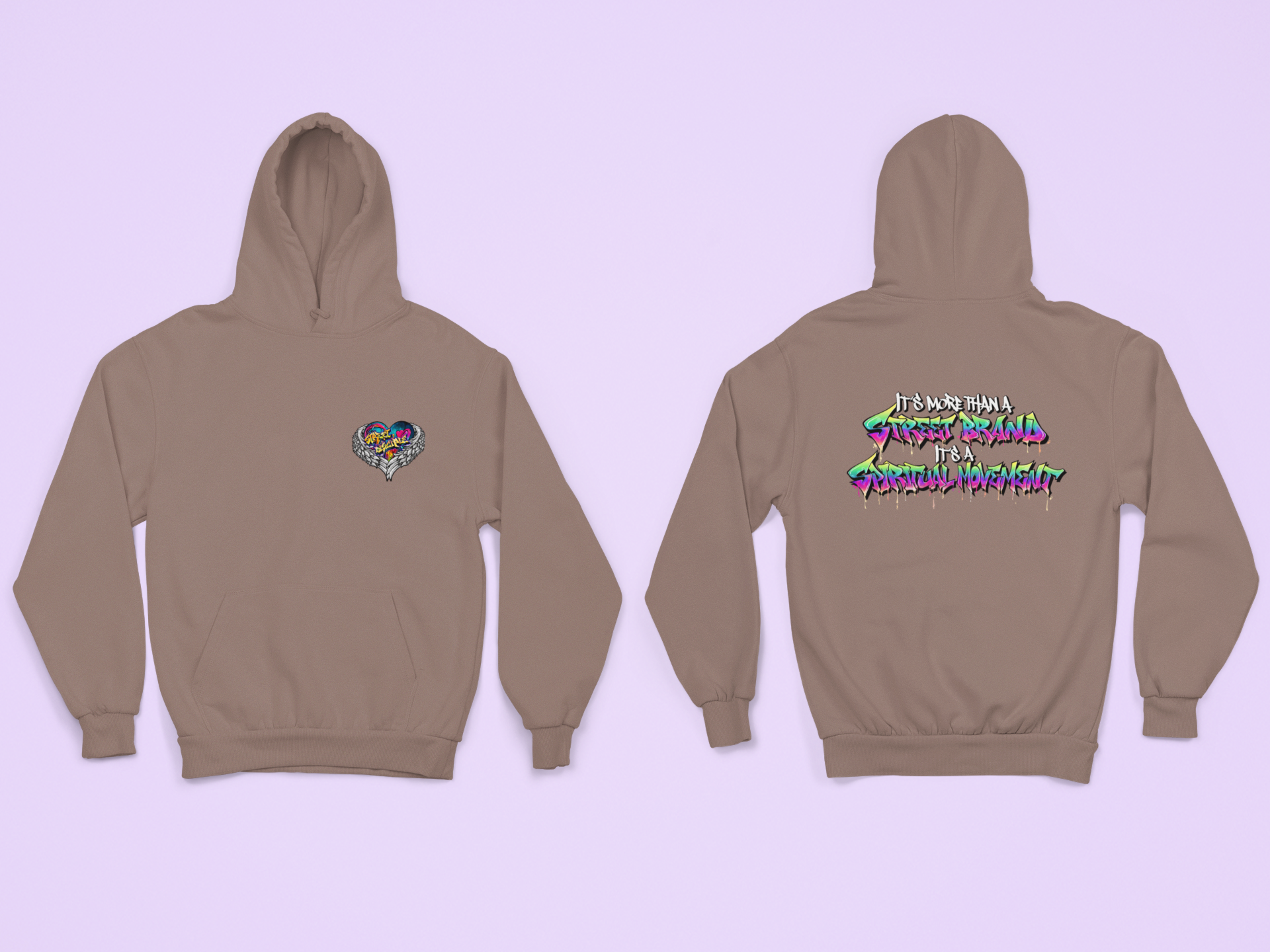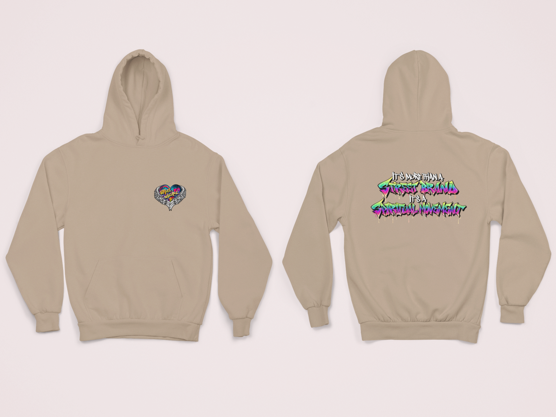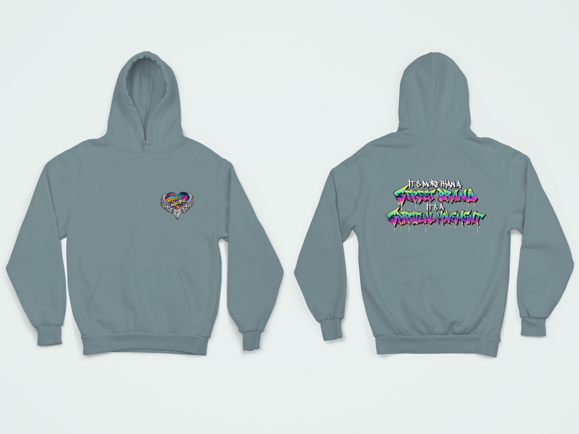 On the back, our bold slogan “It’s More Than A Street Brand; It’s A Spiritual Movement” underscores the message. This piece is crafted for those who carry their faith with strength and style, ready to spread a message of unity and empowerment from every angle.